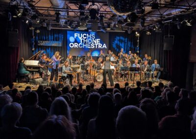 “NEUES PROGRAMM, NEUE KLANGFARBEN – Das neue Programm Reloaded #7 setzt die Tradition des Orchesters fort, dass nur Originalwerke, die die Leiterinnen speziell für das Ensemble geschrieben haben, gespielt wurden. … Das Fuchsthone Orchestra ist eines der wichtigsten Großensembles in der gegenwärtigen Jazzszene. Wobei die Musik weit über die Grenzen des klassischen Jazz und der klassischen Big Band Literatur hinausweist. Das Publikum in der Düsseldorfer Jazz Schmiede war von der Musik gerührt und ergriffen.”